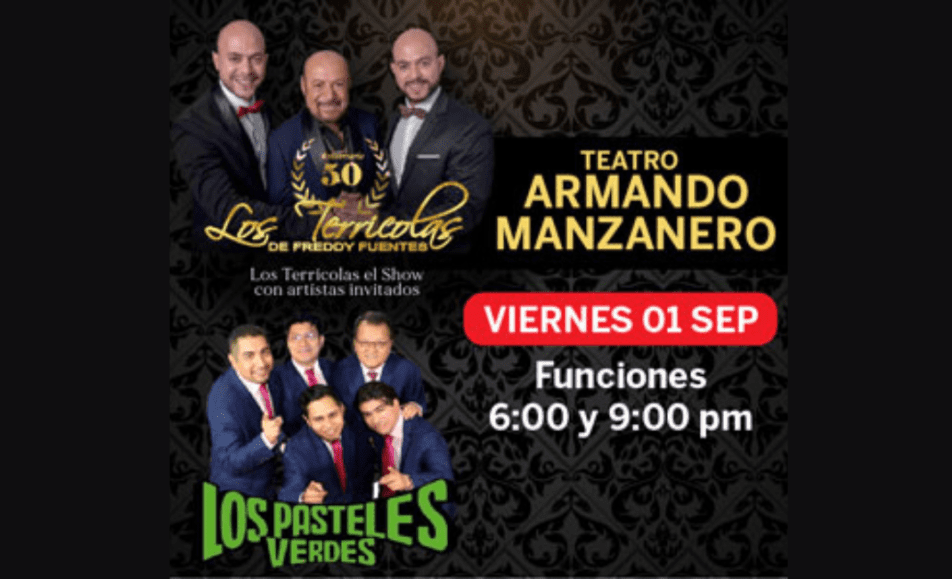 SEPTEMBER 1st 6:00pm and 9:00pm Come and enjoy a mix of ballad memories, with the hits of Los Terrícolas: juro que te amo, hoy te confeso, novela de amor and more, and the best songs from Los Pasteles Verdes: slave...